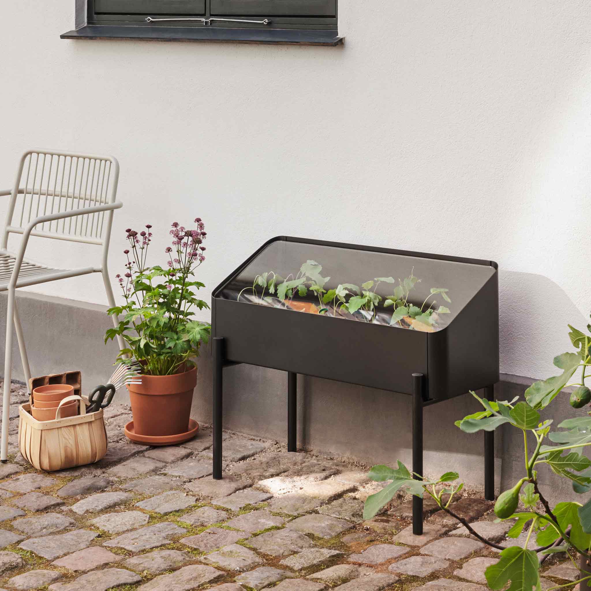 Die Simply Grow Anzuchtbox von Eva Solo ist die ideale Lösung für die Anzucht von Blumen- und Gemüsesamen. Das integrierte Selbstbewässerungssystem minimiert den Pflegeaufwand und sorgt für ein stabiles, gleichmäßiges Wachstum Deiner Pflanzen, während das Risiko von Überwässerung eliminiert wird. Standardtöpfe passen direkt in die Box, sodass lästiges Umpflanzen entfällt. Die wetterfeste Konstruktion ermöglicht eine ganzjährige Nutzung im Freien.