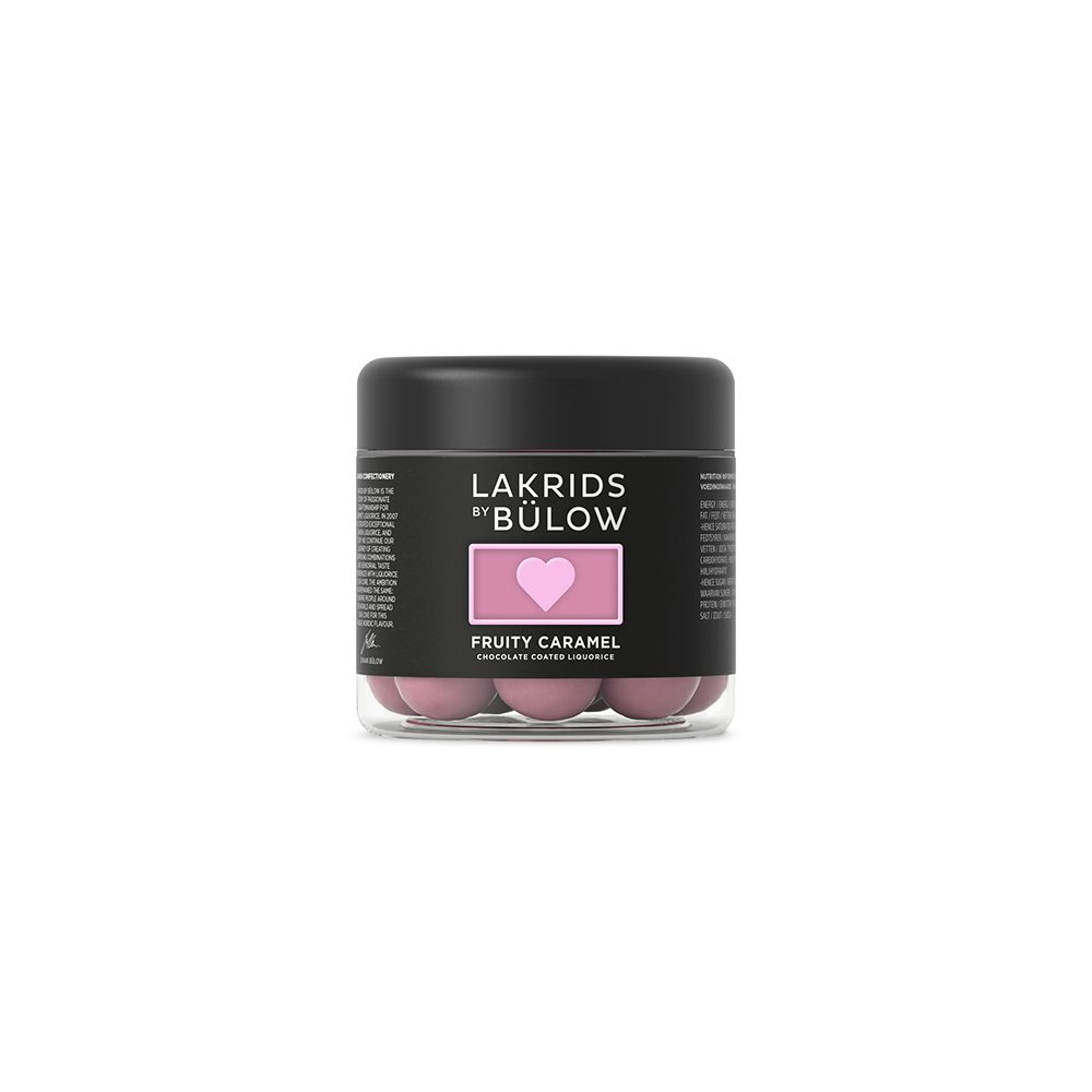 Lakrids Limited! Die Lakrids Love Fruity Caramel gehört zu der beliebten Love Edition, die es einmal im Jahr zwischen Valentinstag und Muttertag gibt. Die neue Sorte Fruity Caramel ist ein Geniestreich, denn im Inneren verbirgt sich ein weicher salziger Lakritz Kern, der diese Sorte ganz Besonders macht. So geht die Dulce Schokolade eine perfekte Liaison mit dem salzigen Kern und der schwarzen Johannisbeere ein. Verliebe Dich in die verführerische Kombination aus salzigem Lakritz in Herzform, umhüllt von süßer Schokolade, mit Schichten aus fruchtigen, schwarzen Johannisbeeren und knusprigen Stücken von rohem Lakritz.