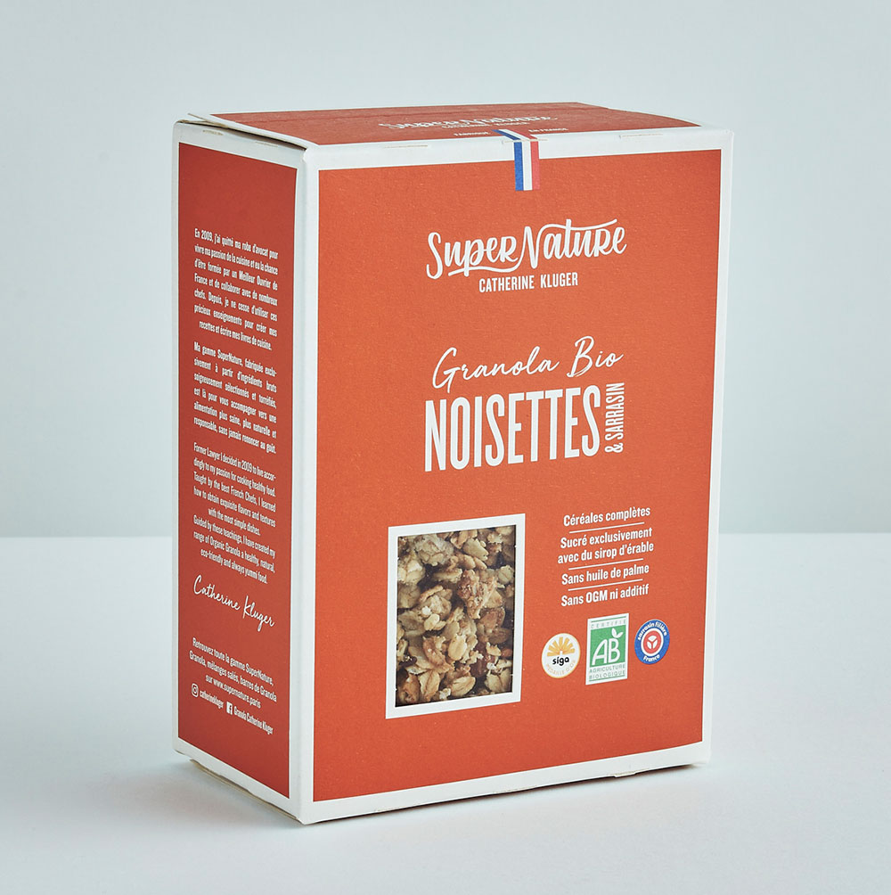 Das SuperNature Noisette & Sarrasin ist ein knuspriges, köstliches Buchweizen Granola mit Nüssen von Catherine Kluger. Die hing 2019 ihre Anwalts-Robe an den Nagel und tauschte sie gegen eine Koch-Schürze. Zuvor hatte sich die Anwältin aus Paris, der eine einfache und vor allem transparente Ernährung am Herzen liegt, bereits als Kochbuchautorin einen Namen gemacht. Catherine Kluger möchte mit dem SuperNature Buchweizen Granola mit Nüssen ihre Begeisterung für dieses Produkt teilen, welches Du in so vielen süßen und herzhaften Facetten genießen kannst. Mit Lust, Freude und Geselligkeit. Ihr Müsli und Granola Sortiment findet man in den besten Feinkostgeschäften Frankreichs und jetzt auch bei uns.