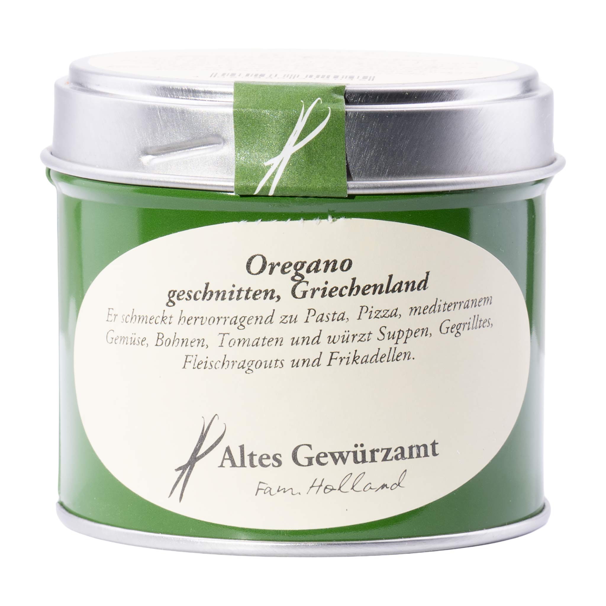 Der Altes Gewürzamt Oregano, das ist geschnittene Oregano aus dem Gewürzsortiment von Ingo Holland. Gewachsen unter der Sonne Griechenland, zum perfekten Zeitpunkt geerntet, geschnitten und schonend getrockent bewahrter sein intensives Aroma. So hast Du jederzeit die Gelegenheit mit tollem Oregano Aroma zu würzen. Oregano ist eleganter, pfeffriger als Majoran und besitzt Anklänge von Zitrone.