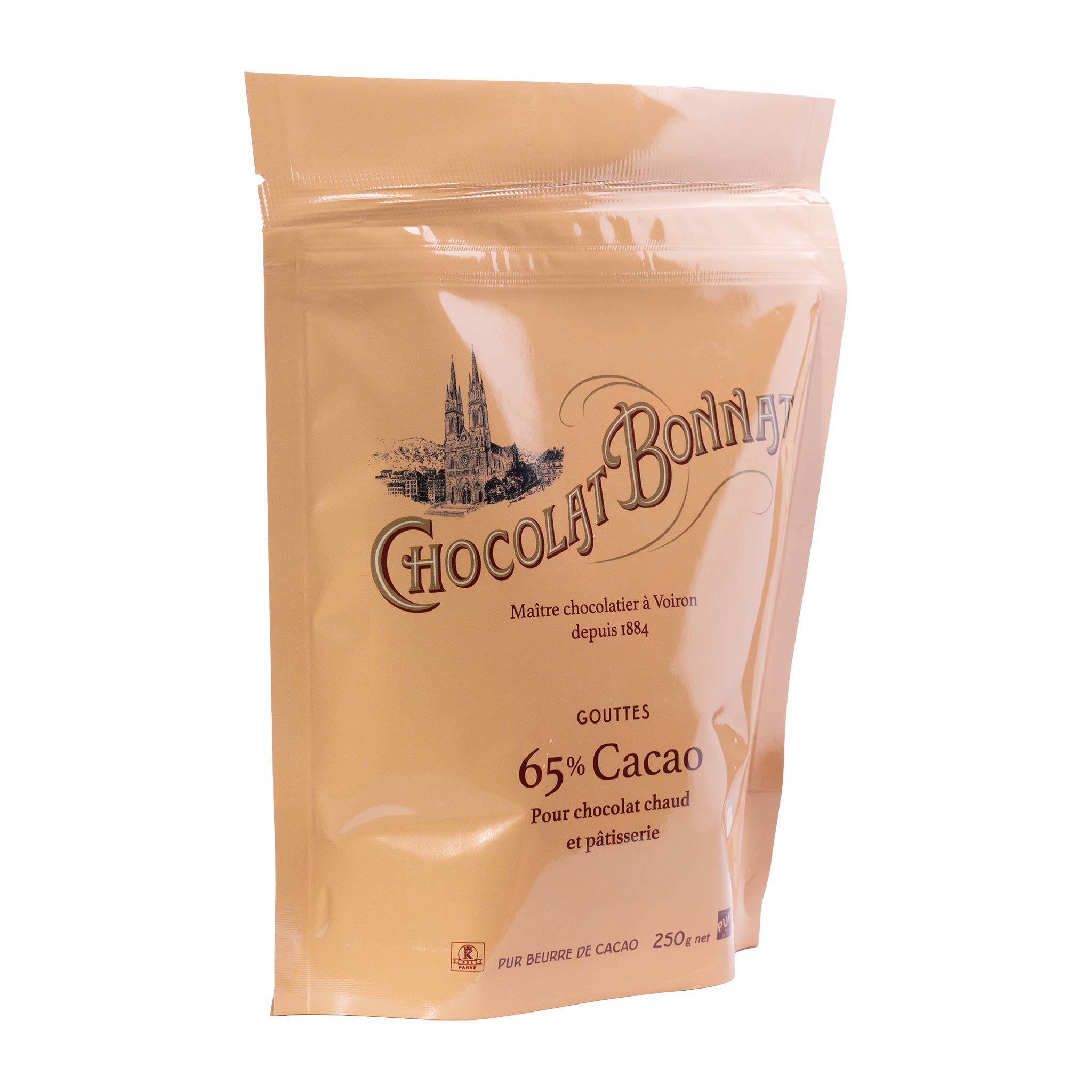 Bonnat Trinkschokolade 65 % Kakao im 250-g-Beutel: kräftig, cremig und fein ausbalanciert. Für heiße Schokolade wie aus der Chocolaterie – klassisch oder vegan zubereitet.