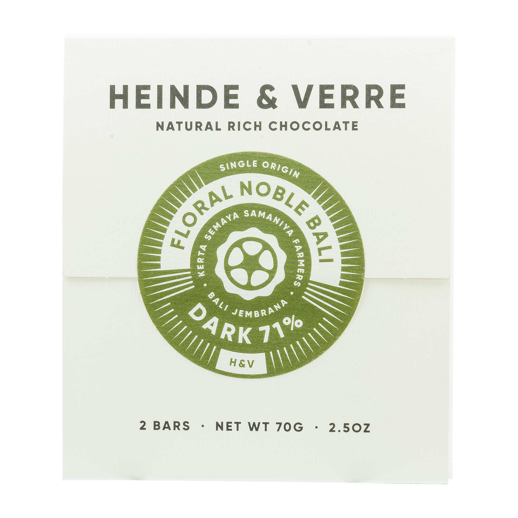 Die Heinde & Verre Schokolade Floral Noble Bali ist eine bean-to-bar Schokolade aus single-origin Kakaobohnen. Sie ist frei von Nussspuren, sojafrei, glutenfrei, laktosefrei und vegan.