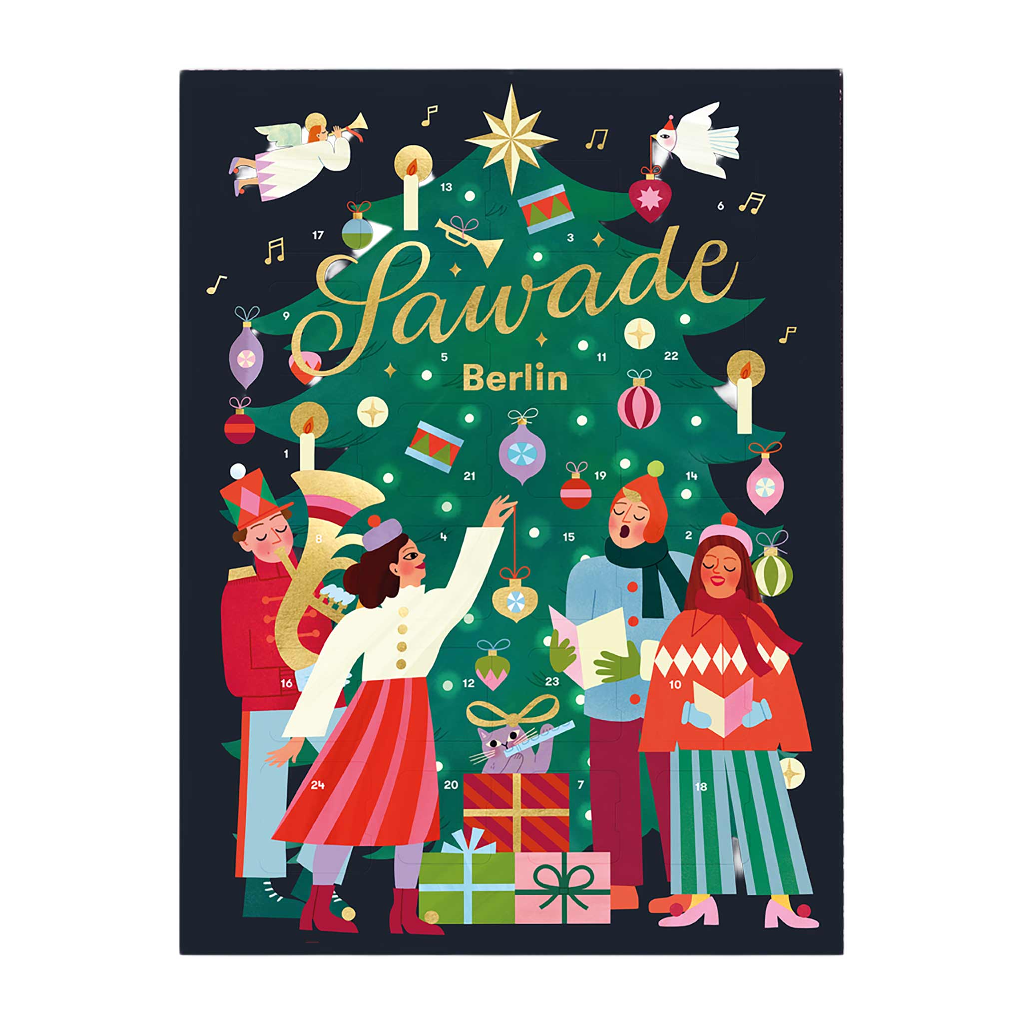 Der diesjährige Sawade Adventskalender wurde exklusiv für Sawade von der Illustratorin Clare Owen gestaltet. Musizierende Tiere, singende Figuren und glänzende Ornamente erzählen von Wärme, Gemeinschaft – und einem Hauch Weihnachtszauber. Ob Parade, tanzender Bär oder festliche Kugel, hier steckt pure Festtagsfreude in jedem Detail. Jetzt bestellen – nur solange der Vorrat reicht!