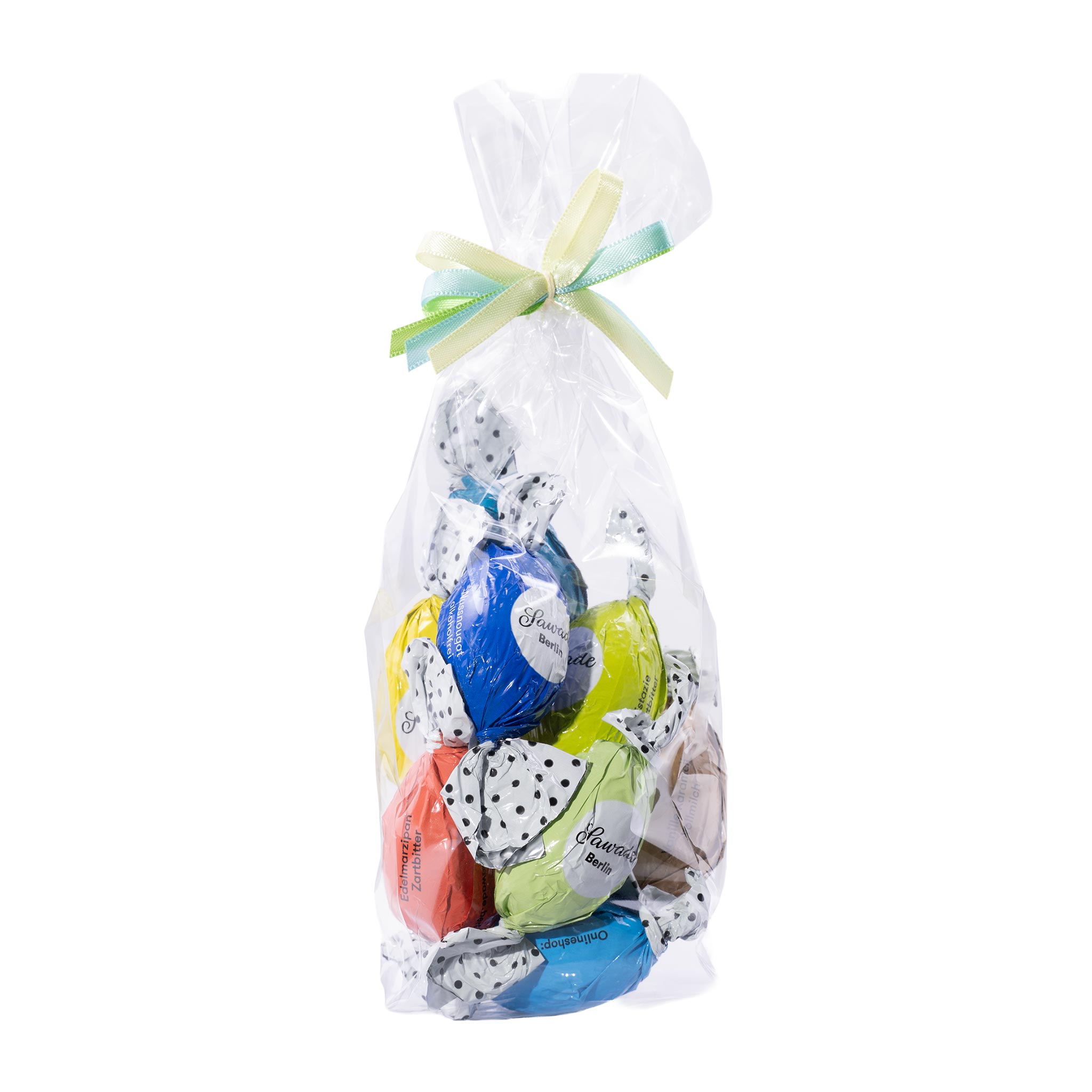 Die Sawade gemischte Schokoeier alkoholfrei füllen wir 8 Ostereier in ein Tütchen: Marzipan, Erdbeere, Zitrone, Pistazie, Karamell, Blätterkrokant, Nussnougat und Nougat Crisp und machen eine Schleife dran. So wird daraus die Füllung für dein Osternest oder ein Geschenk zu Ostern für deine Liebsten. Einfach himmlisch!