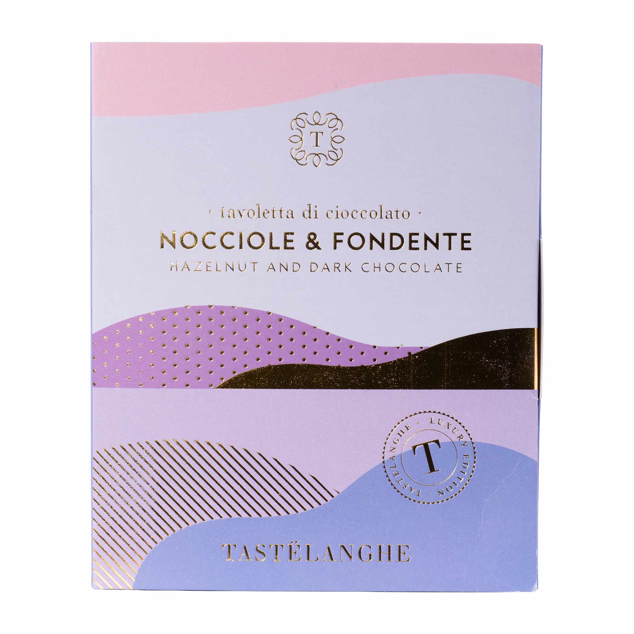 Genieße die Tastelanghe Zartbitterschokolade mit ganzen Haselnüssen – herbe Schokolade kombiniert mit den besten Piemonteser Haselnüssen. Stilvol verpackt ist sie perfekt als Geschenk.