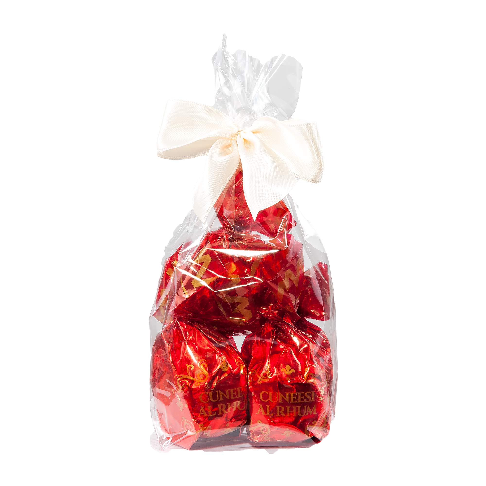 Fünf Stück von den einzeln verpackten italienischen Pralinen von Mandrile Melis füllen wir für dich in ein Tütchen mit Schleife. So kannst Du die Cuneesi al Rhum verschenken oder natürlich auch selbst genießen.