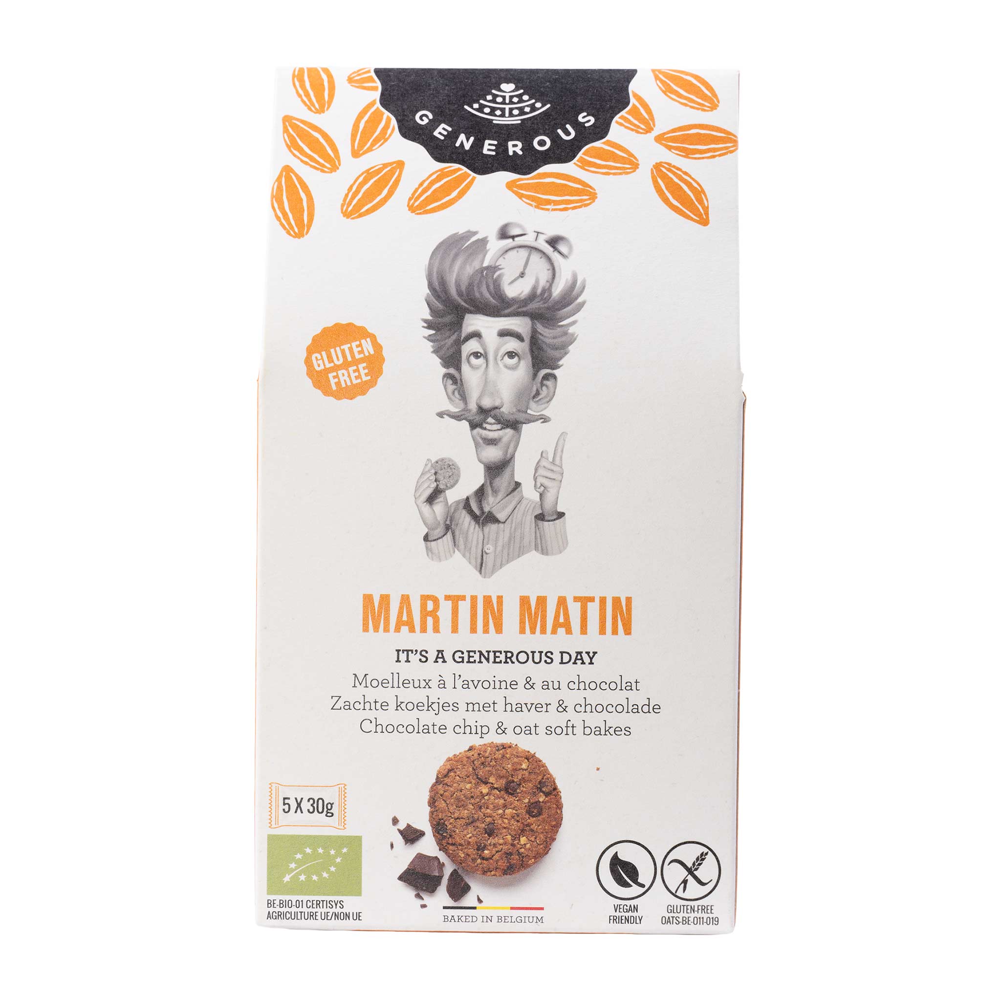 Entdecke die Welt von Generous Martin Matin, einem knusprigen Genuss, der dir einen großartigen Morgen und einen tollen Tag schenken wird. Dieses glutenfreie Hafergebäck, hergestellt von der renommierten belgischen Keksmanufaktur Generous, sind ein wahres Meisterwerk der Backkunst. Jeder Keks erzählt die Geschichte von Martin, dem Morgenmuffel, der ein Keksrezept für Leute wie ihn entwickelte, denn eine bessere Morgenlaune macht einen besseren Tag.