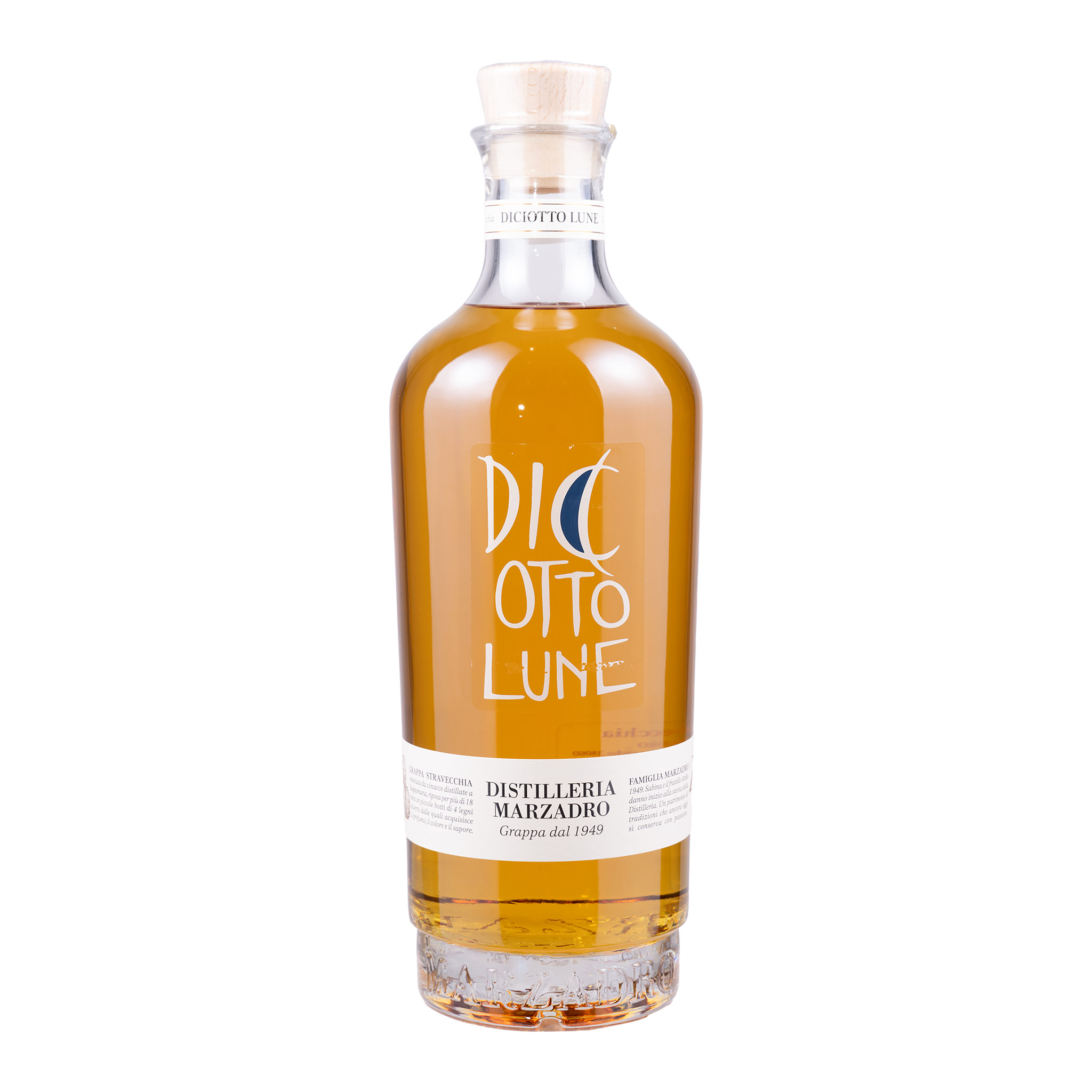 Der Destilliermeister Andrea Marzadro verwendet nur das Herzstück für diesen beliebten Grappa, welcher im Anschluss ganze 18 Monate in kleinen Fässern aus Kirschholz, Esche, Eiche und Robinie reift. Die Reifungsdauer orientiert sich dabei am natürlichen Rhythmus der Natur: 18 Vollmonde, also 18 Monate, Diciotto Lune.