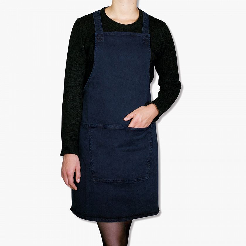 Die Schürze mit verstellbaren Hosenträgern kreuzt den Rücken und die Träger an der Taille. Das ist super praktisch, weil keine Schleifen mehr gebunden werden müssen und echt bequem, da die Schürze sofort gut sitzt. Das wird von allen geschätzt, die eine Leidenschaft für Küche und gutes Essen haben und ihre Alltagskleidung vor Spritzern schützen wollen. Der weiche und gleichzeitig feste Baumwollstoff sieht modisch aus und läßt sich gut waschen.