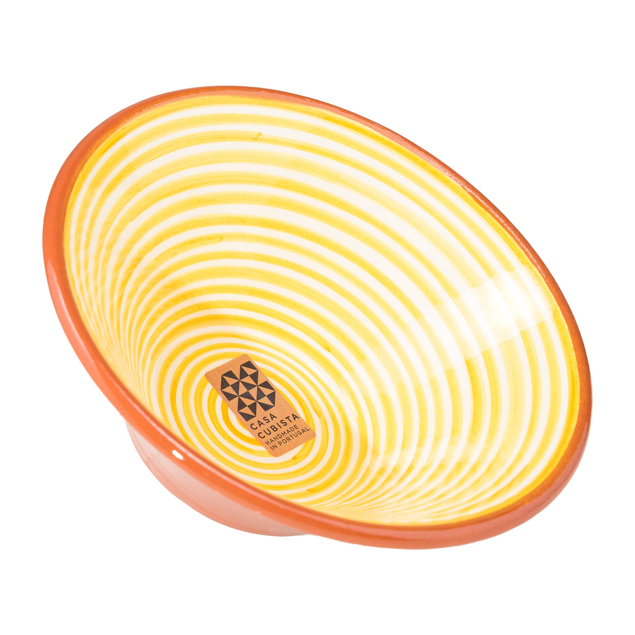 Entdecke die handgefertigte Casa Cubista Keramikschüssel aus Portugal. Mit ihrem Muster classic stripe und den warmen Gelbton Tangerine bringt sie Eleganz und Funktionalität auf deinen Tisch. Perfekt für Salate und mehr.