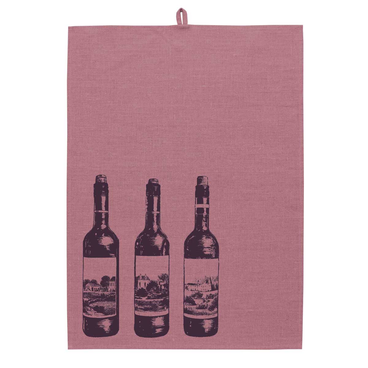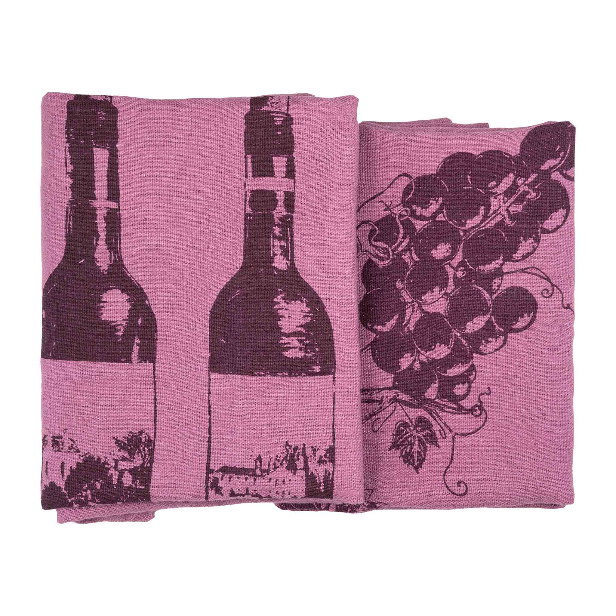 Entdecke das stilvolle Frohstoff Leinen Geschirrtuch Set Vino mit Weinmotiven in Erika. Hochwertig, saugfähig und handbedruckt aus Hamburg.