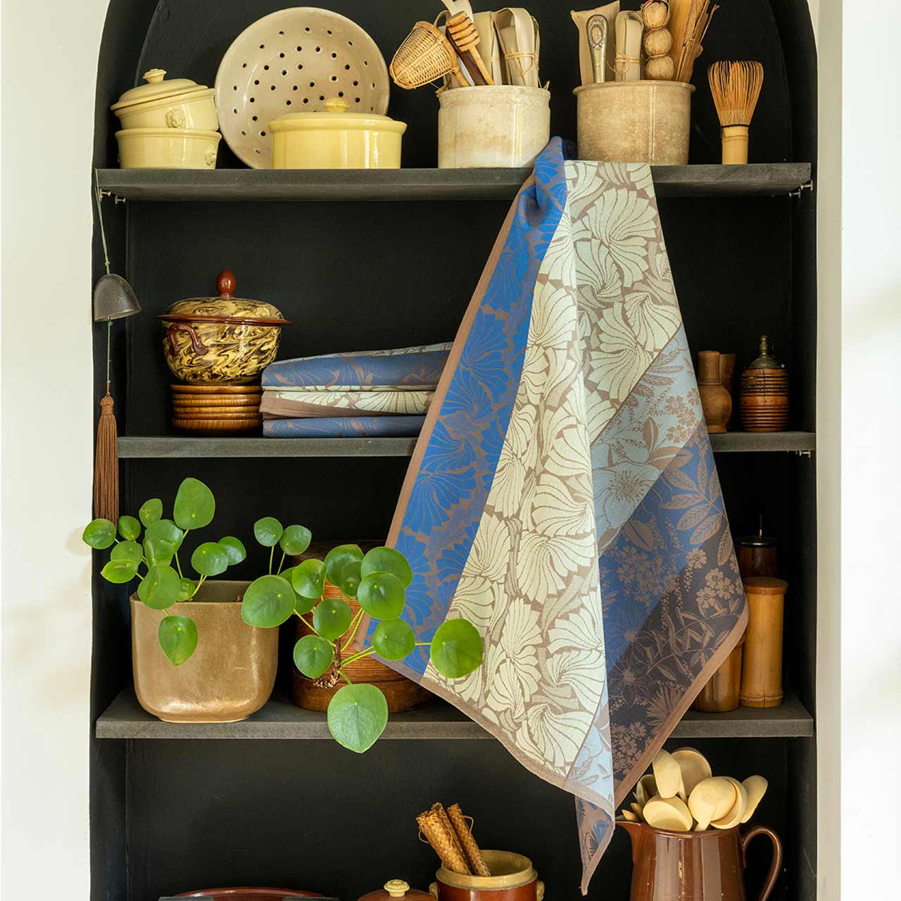 Das Le Jacquard Francais Geschirrtuch Cottage Cozy in schönen blau Tönen verfügt über eine stattliche Größe von 60x80cm und ein gewebtes Etikett zum einfachen Aufhängen in deiner Küche.